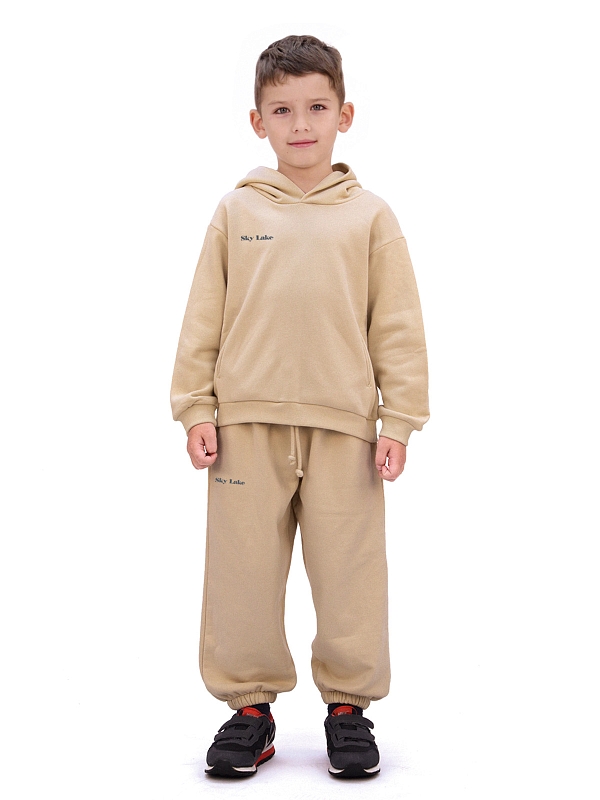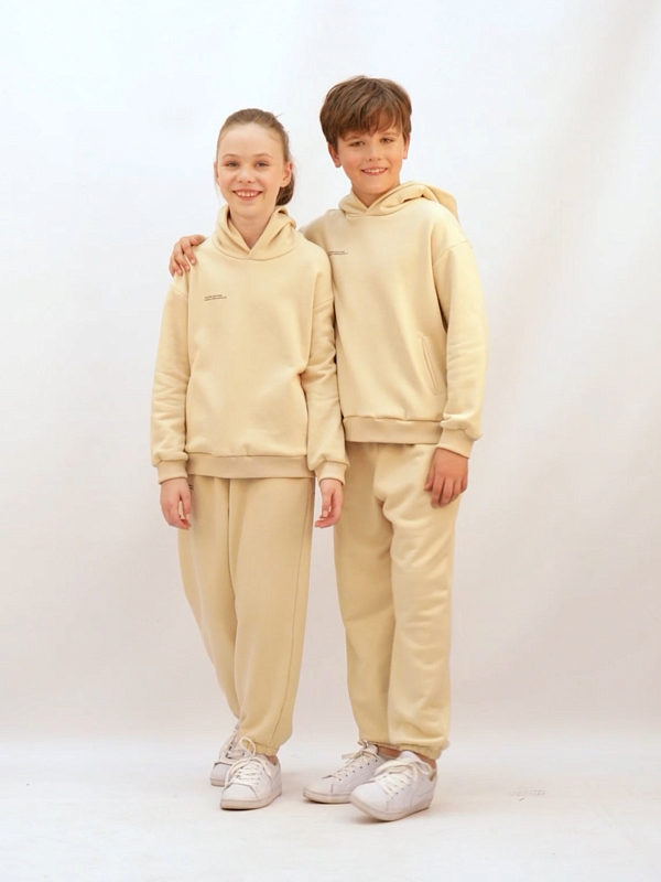 Изготовлено из плотного, мягкого хлопкового трикотажа песочного цвета.